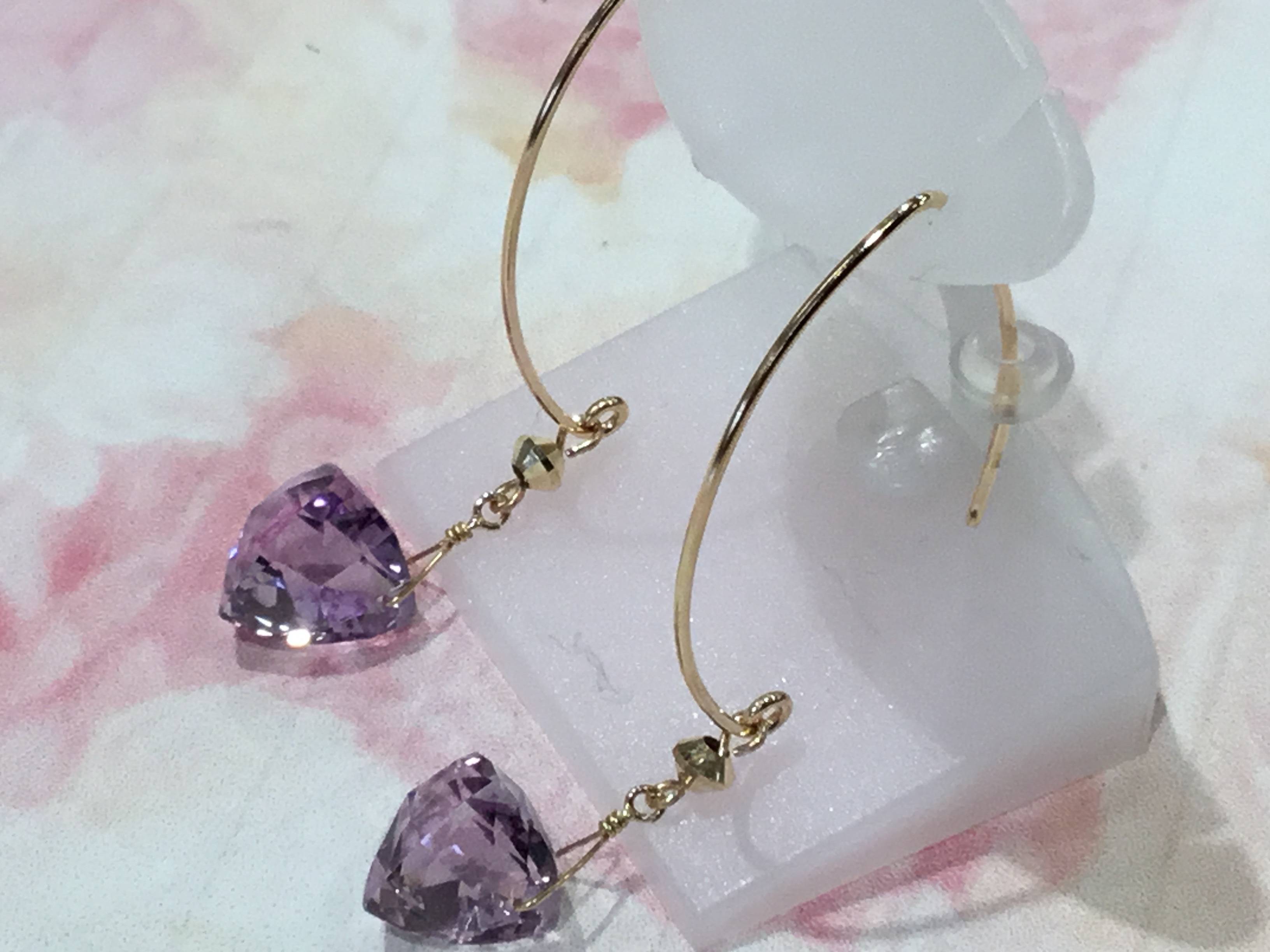 K10ピアス ピンクアメジスト フック
