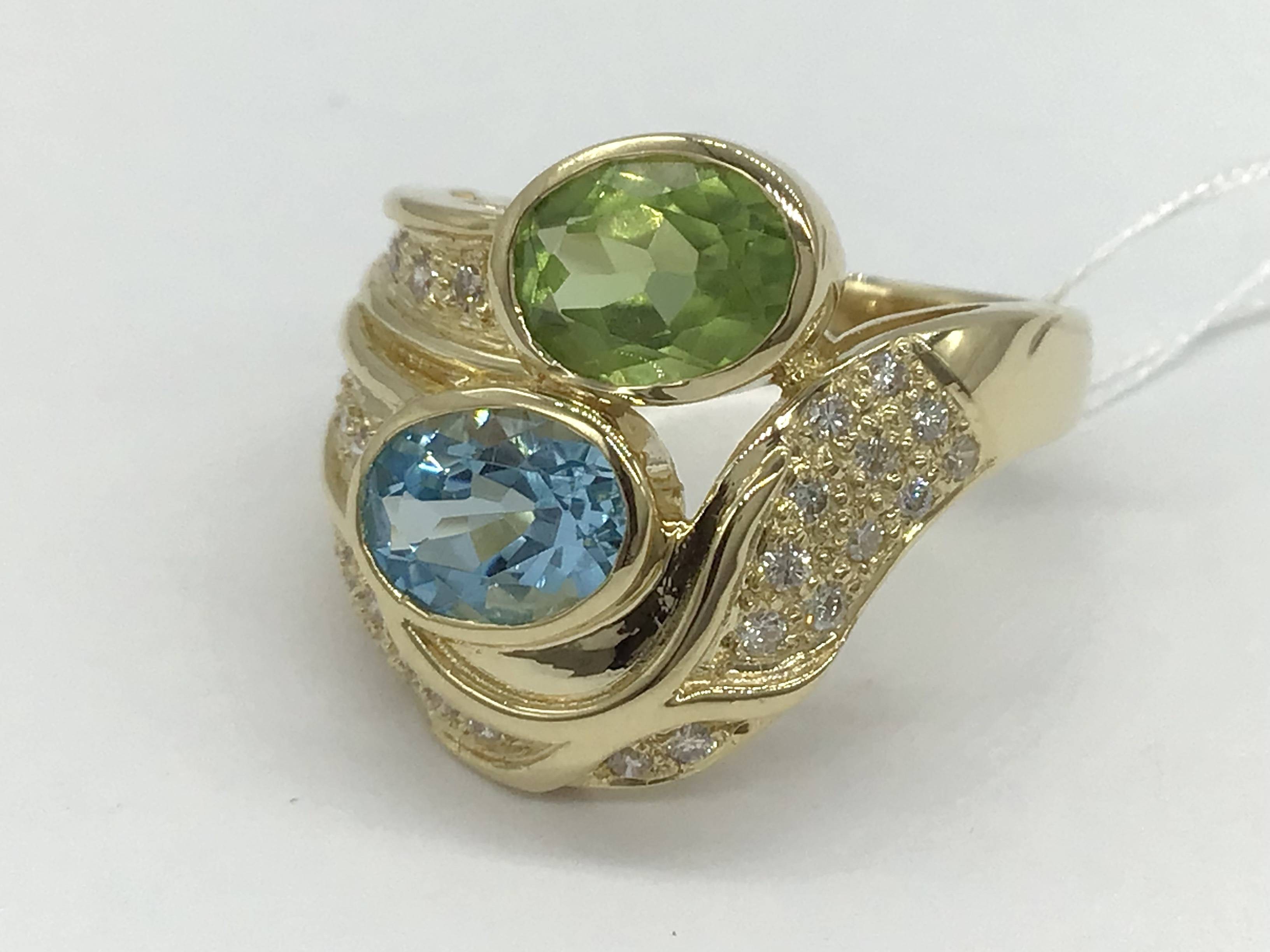 K18リング ブルートパーズ/ペリドット/D0.32 #11
