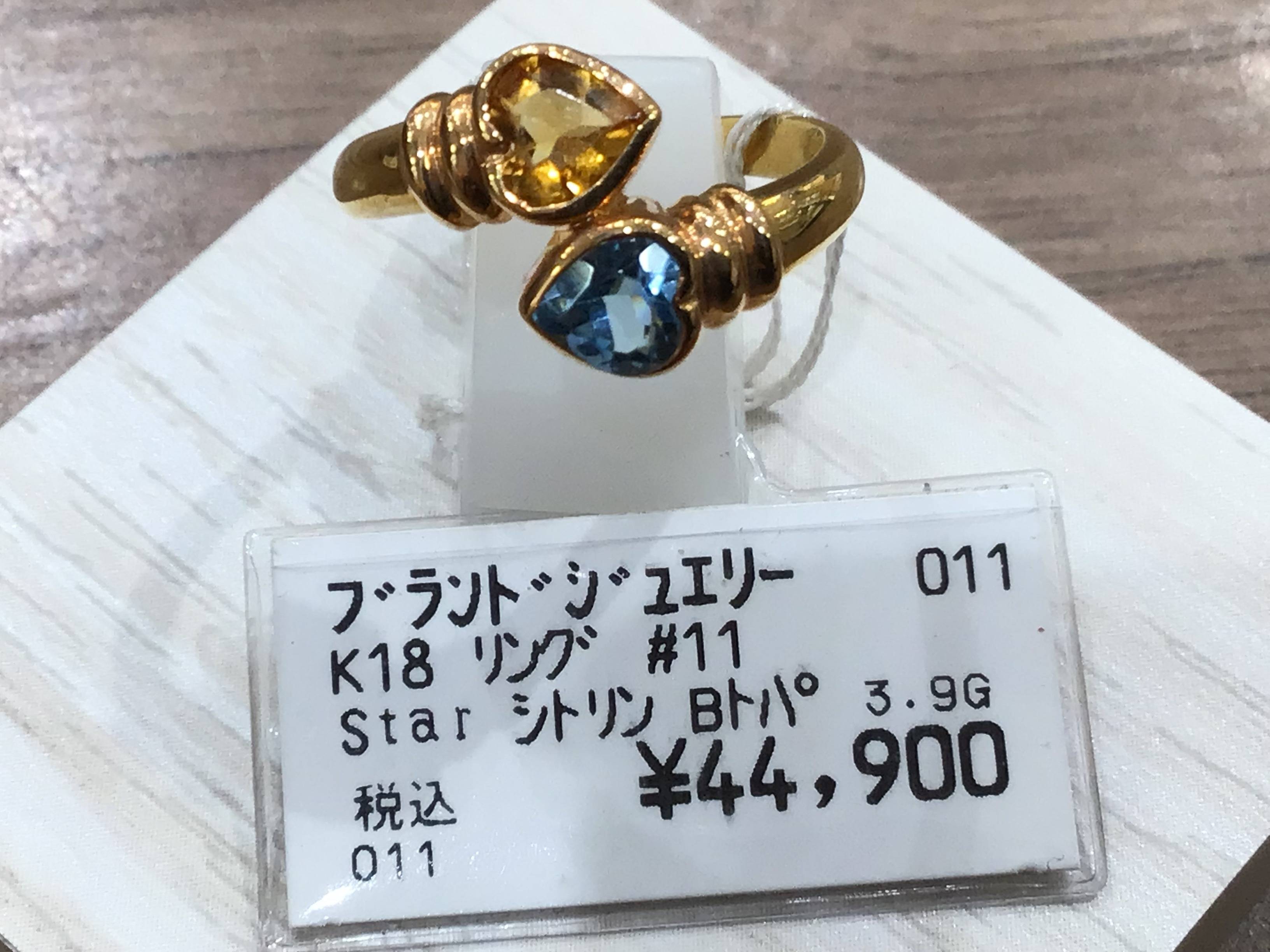 k18 シトリン Bトパーズ リング