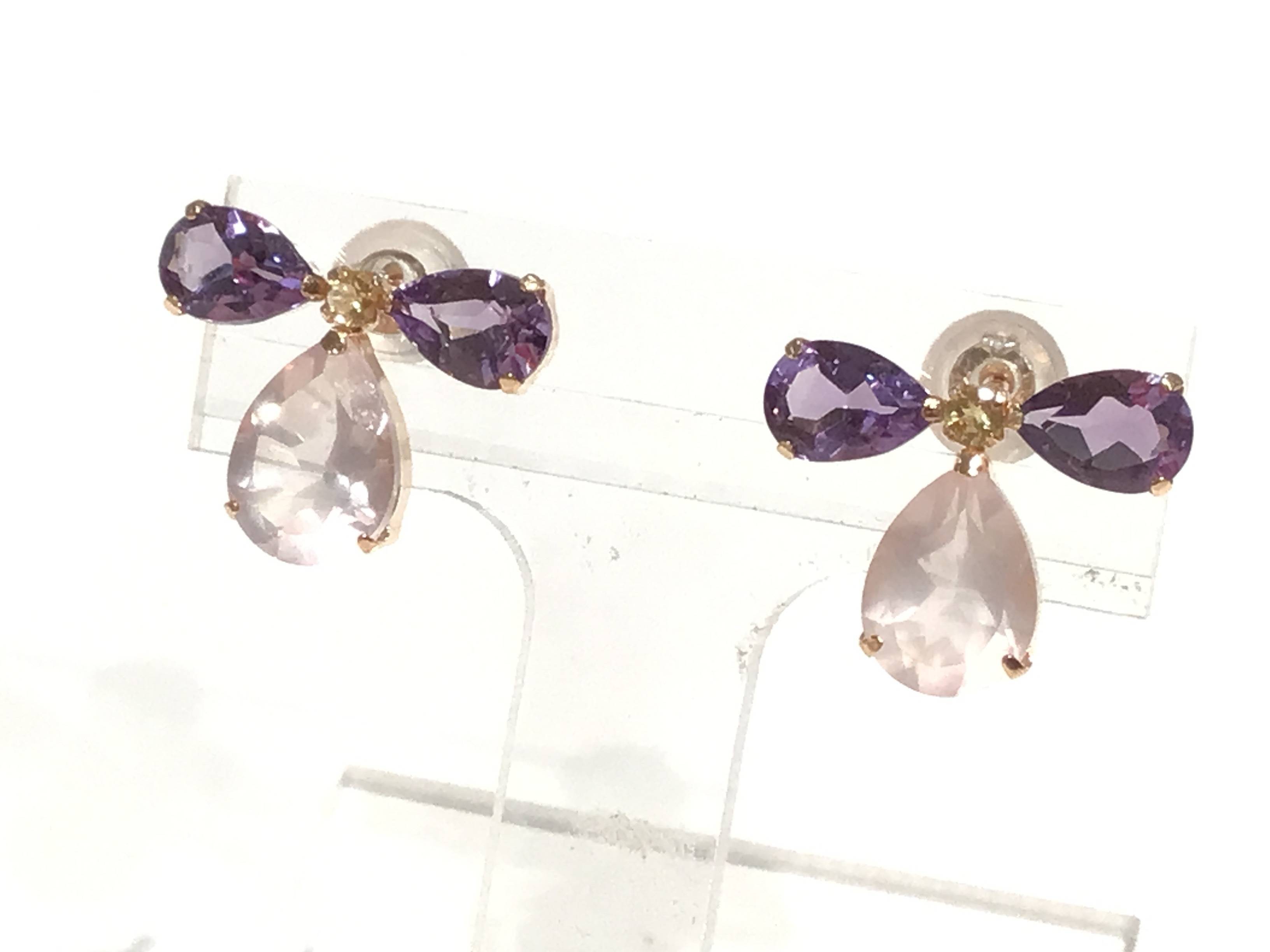 K18PGピアス/シト/アメ/ローズクォーツ