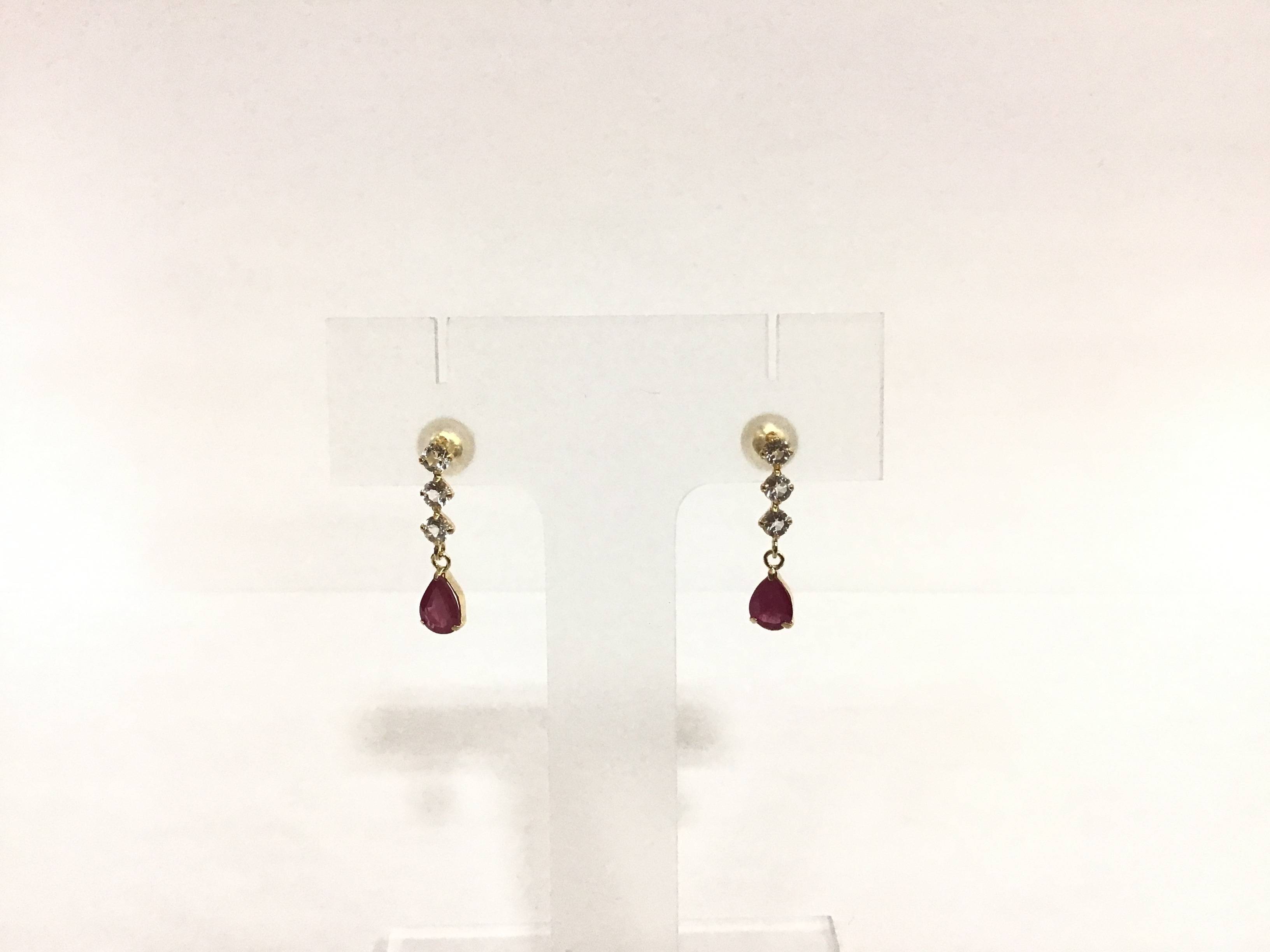 K18 ピアス ルビー/Wトパーズ