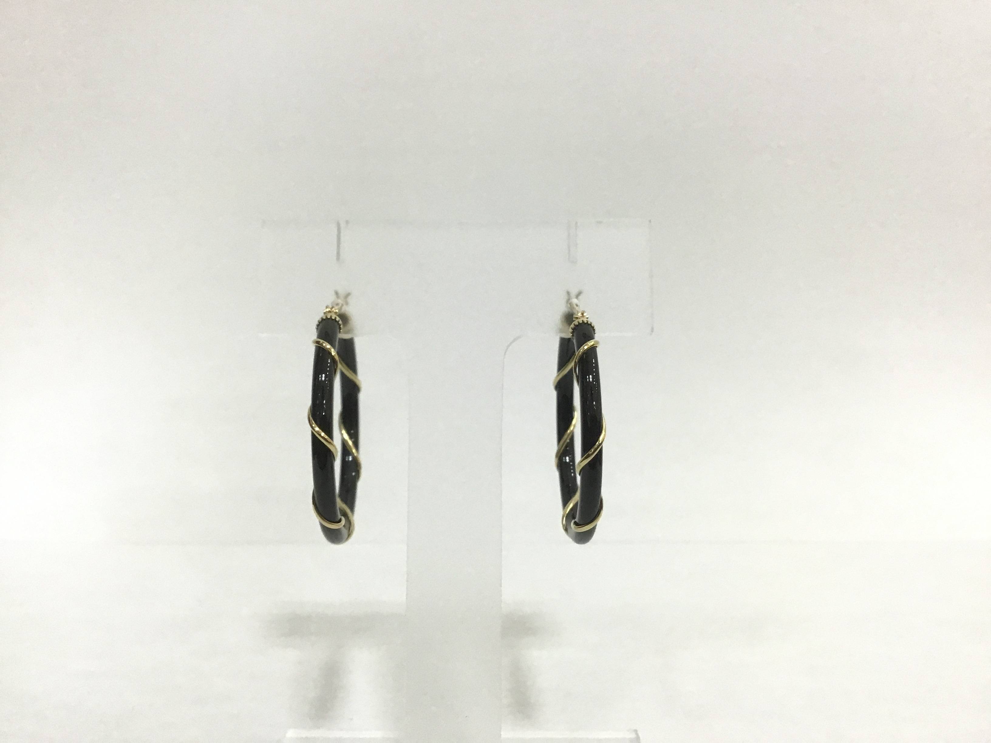 K18ピアス オニキス フープ