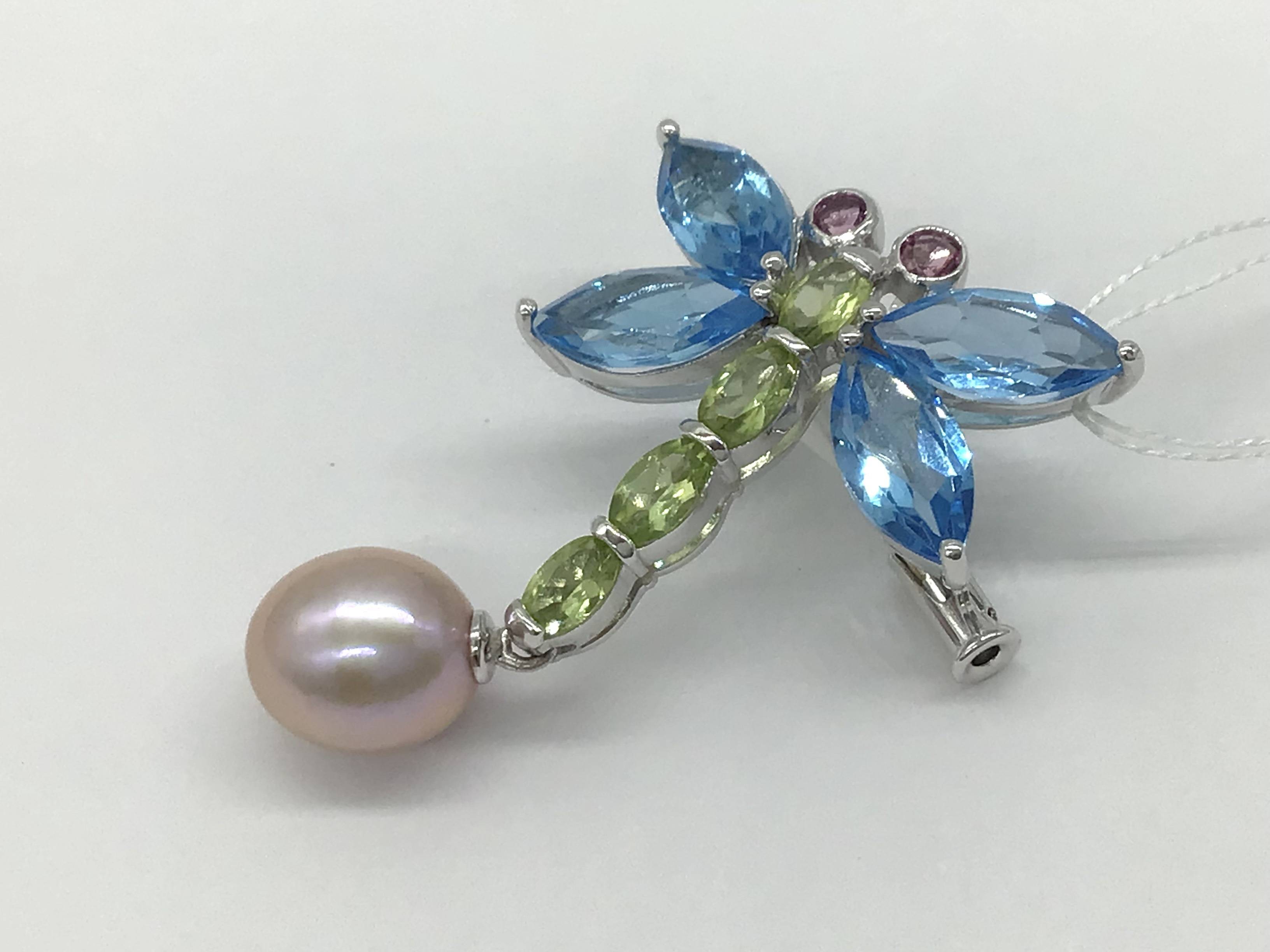 K14WGブローチ ブルートパーズ PE/Pトル/タンスイパール
