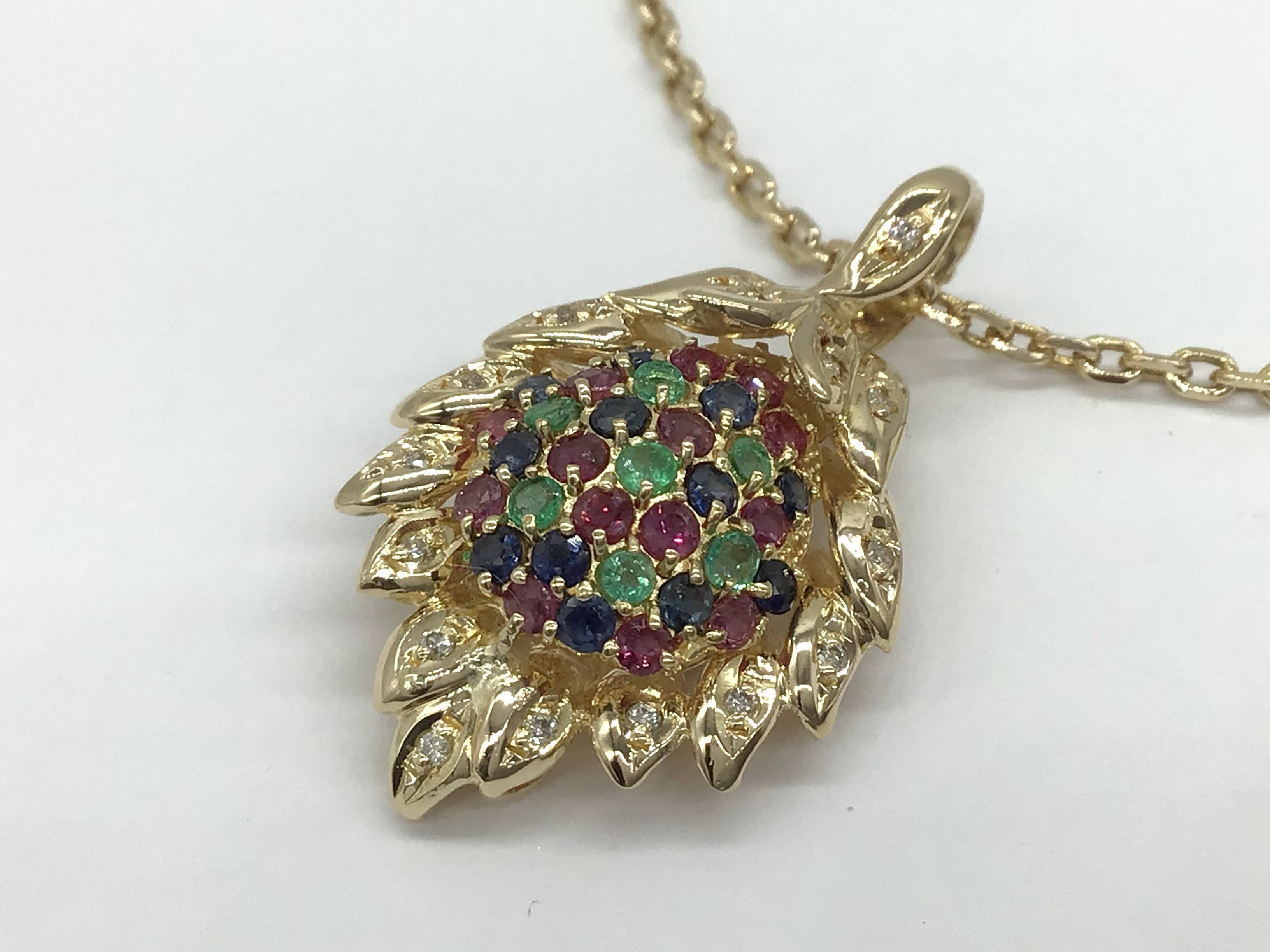 K18プチネックレス マルチカラーE/R/S/D0.106 44CM