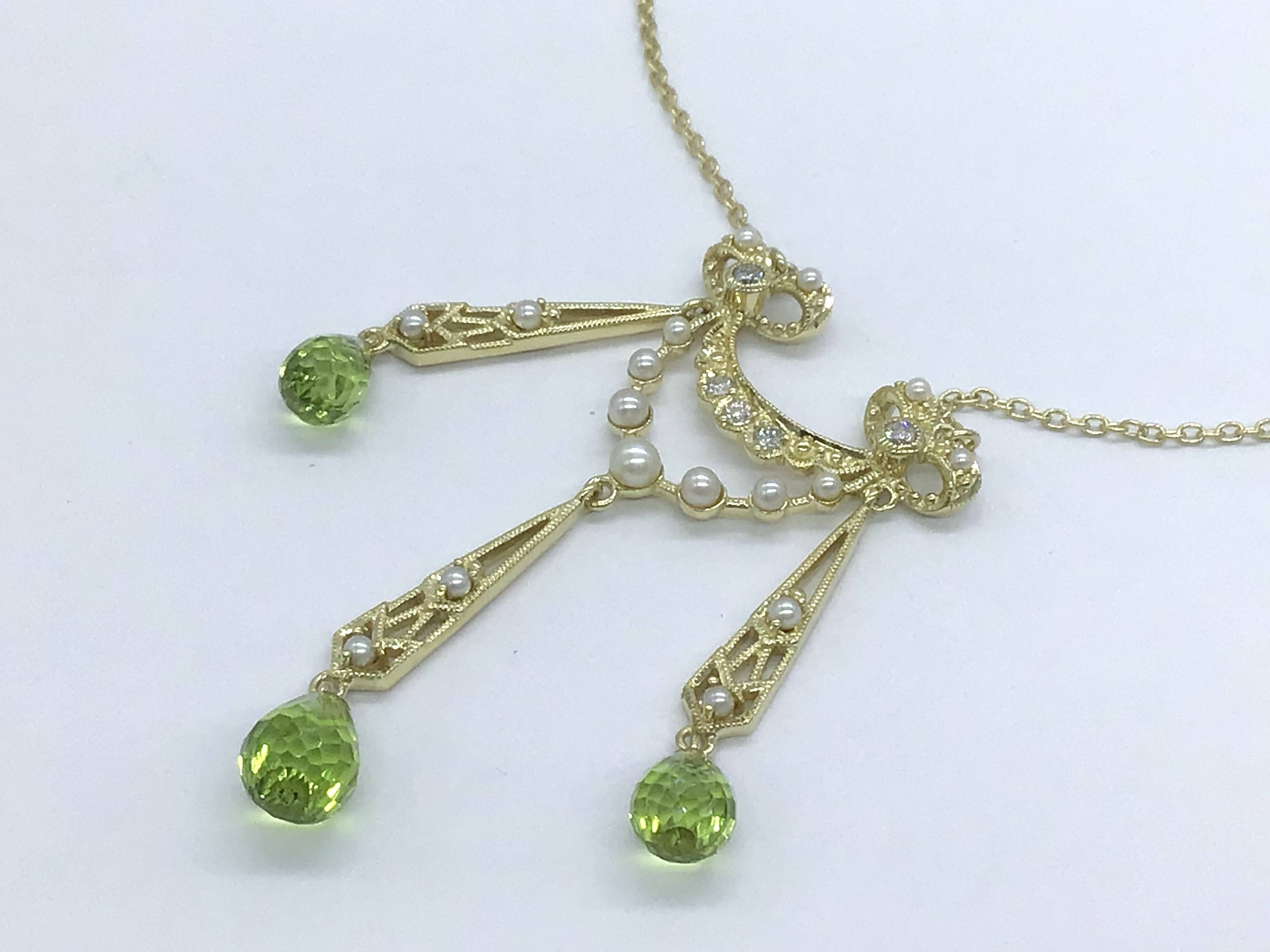 K18デザインネックレス ペリドット パール/D0.10 55CM