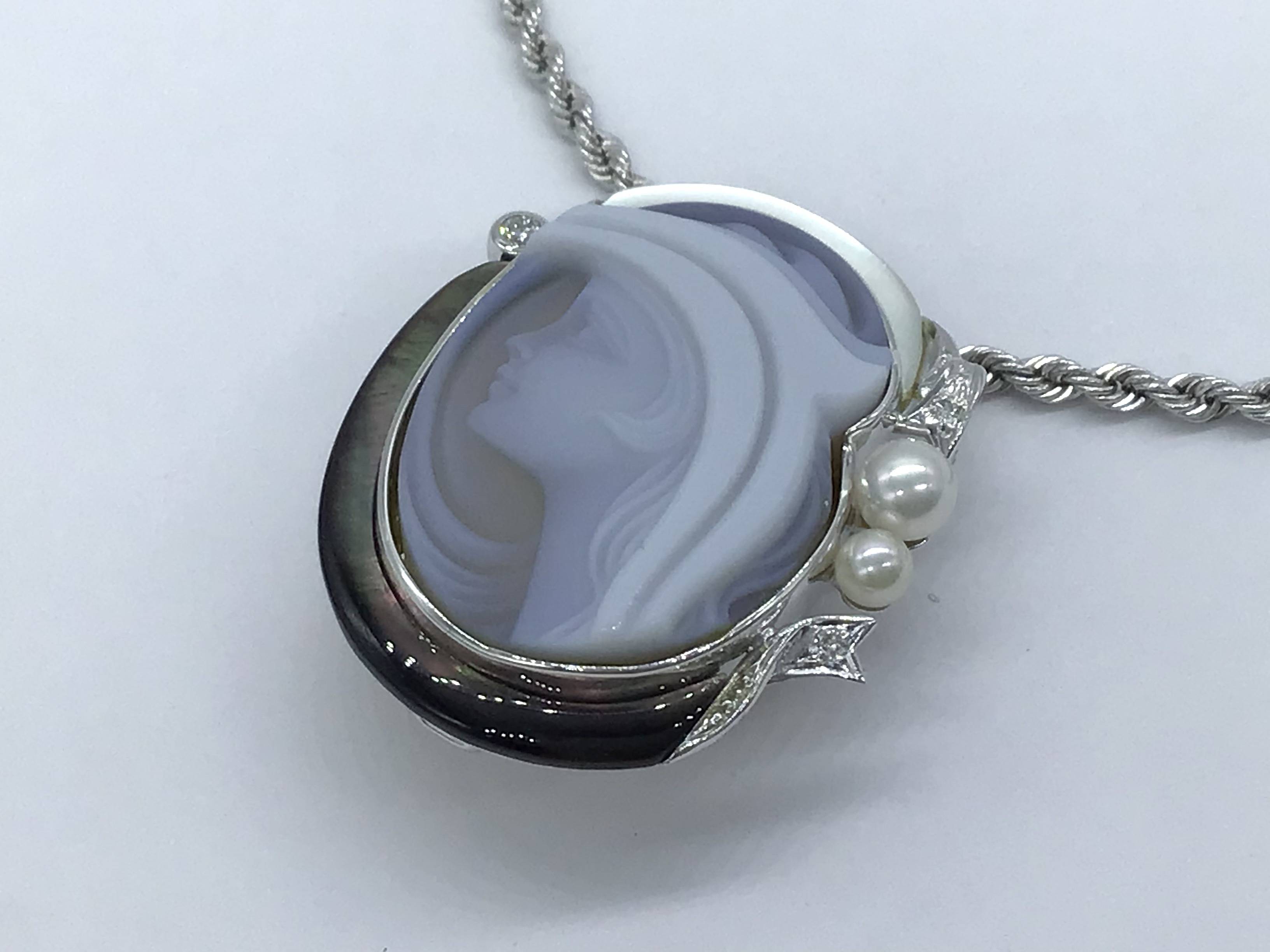 K18WGプチネックレス メノーカメオD0.05/アコヤ/シェル 42CM