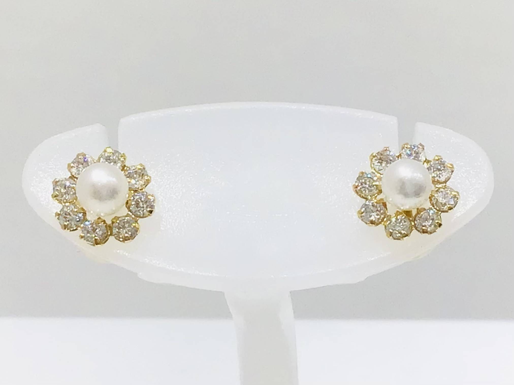 K18 ピアス CZ/淡水パール