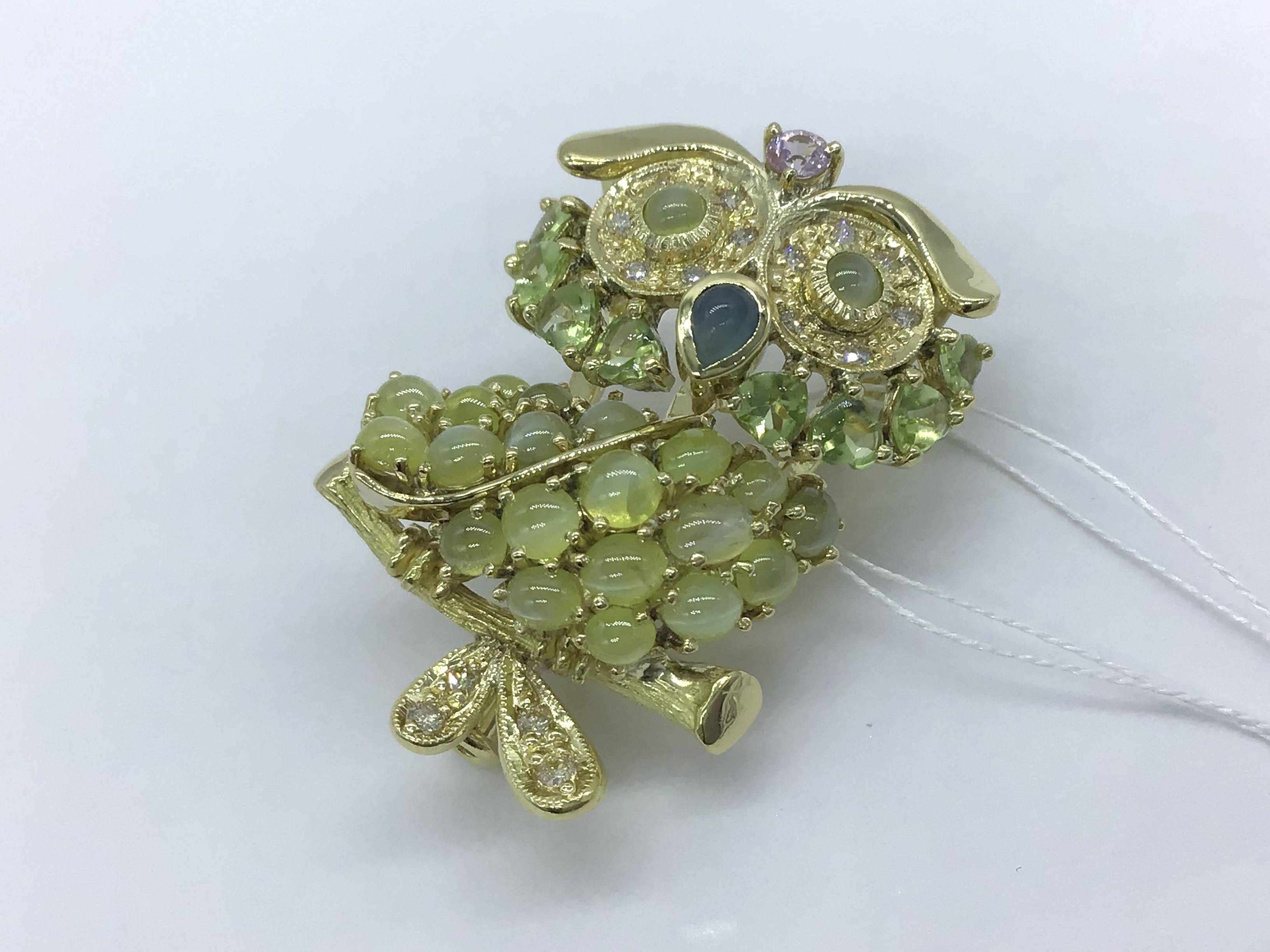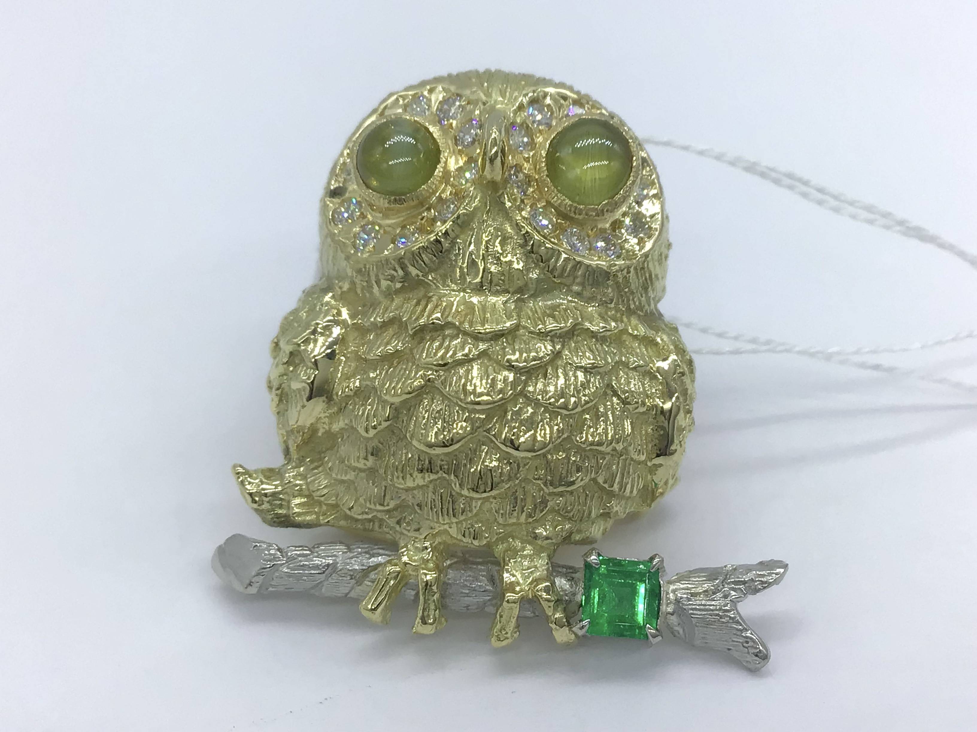K/Pブローチ キャッツアイ エメラルド/D0.18