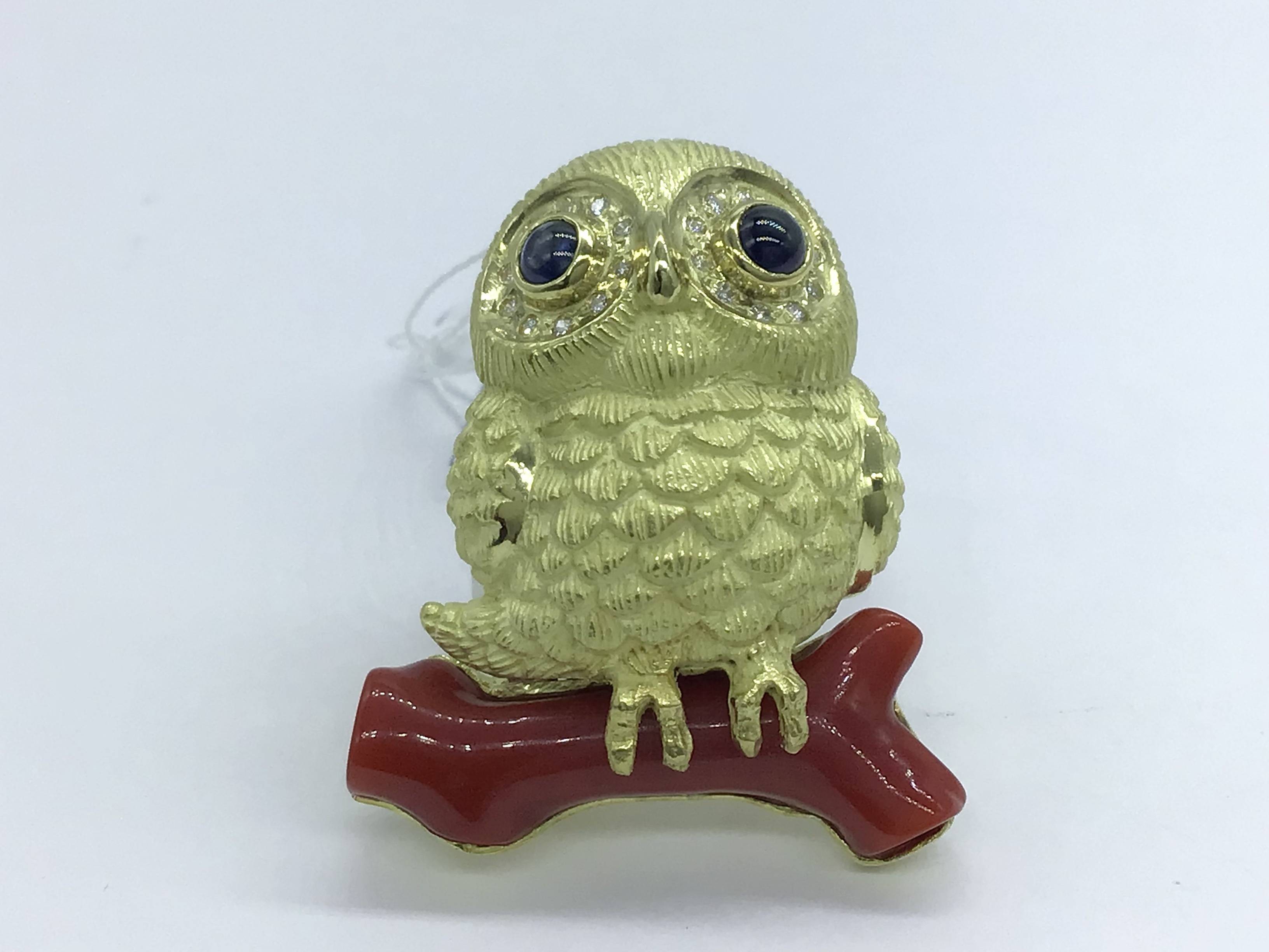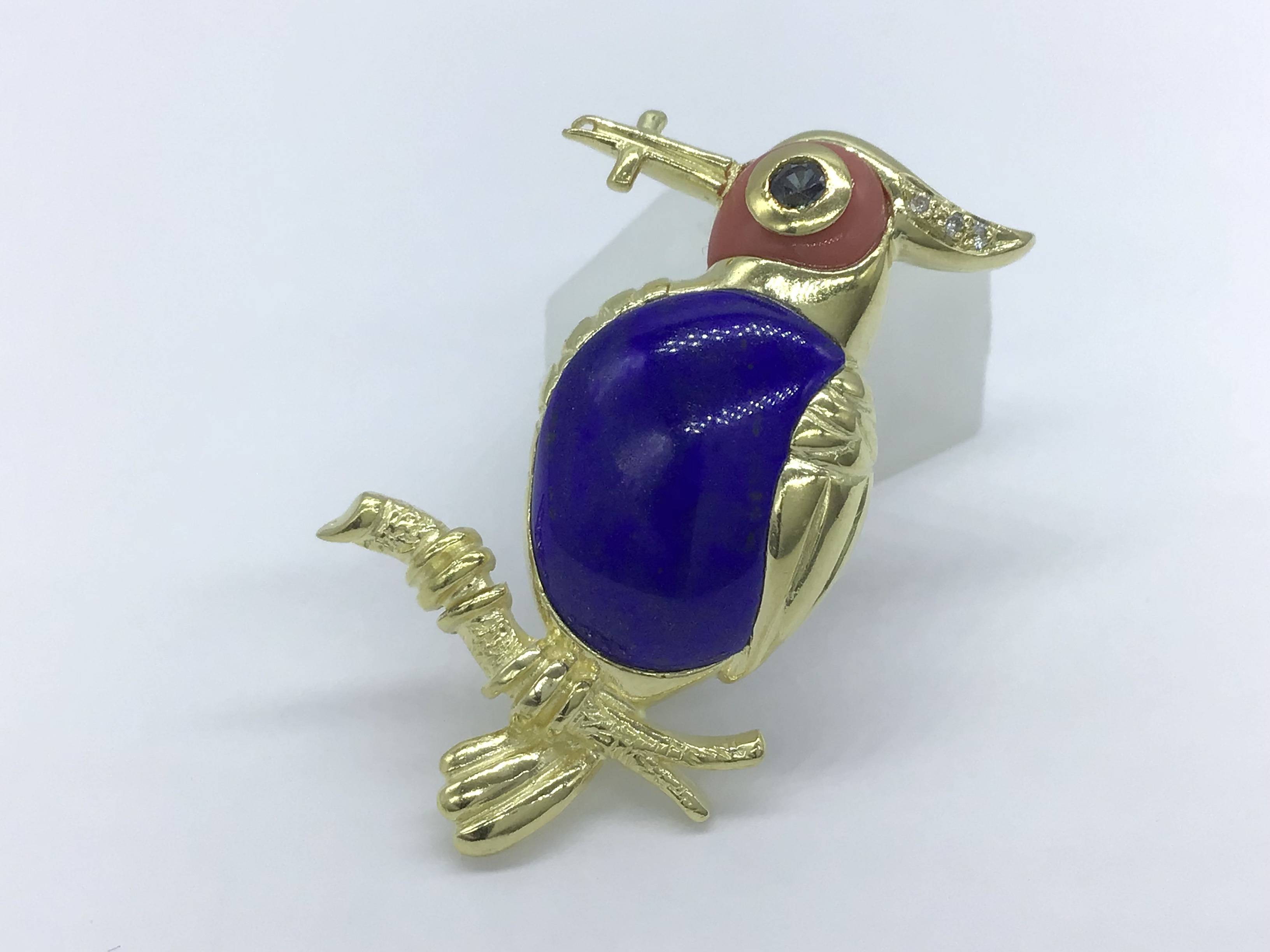 K18ブローチ ラピス サファイア/サンゴ/ダイヤ