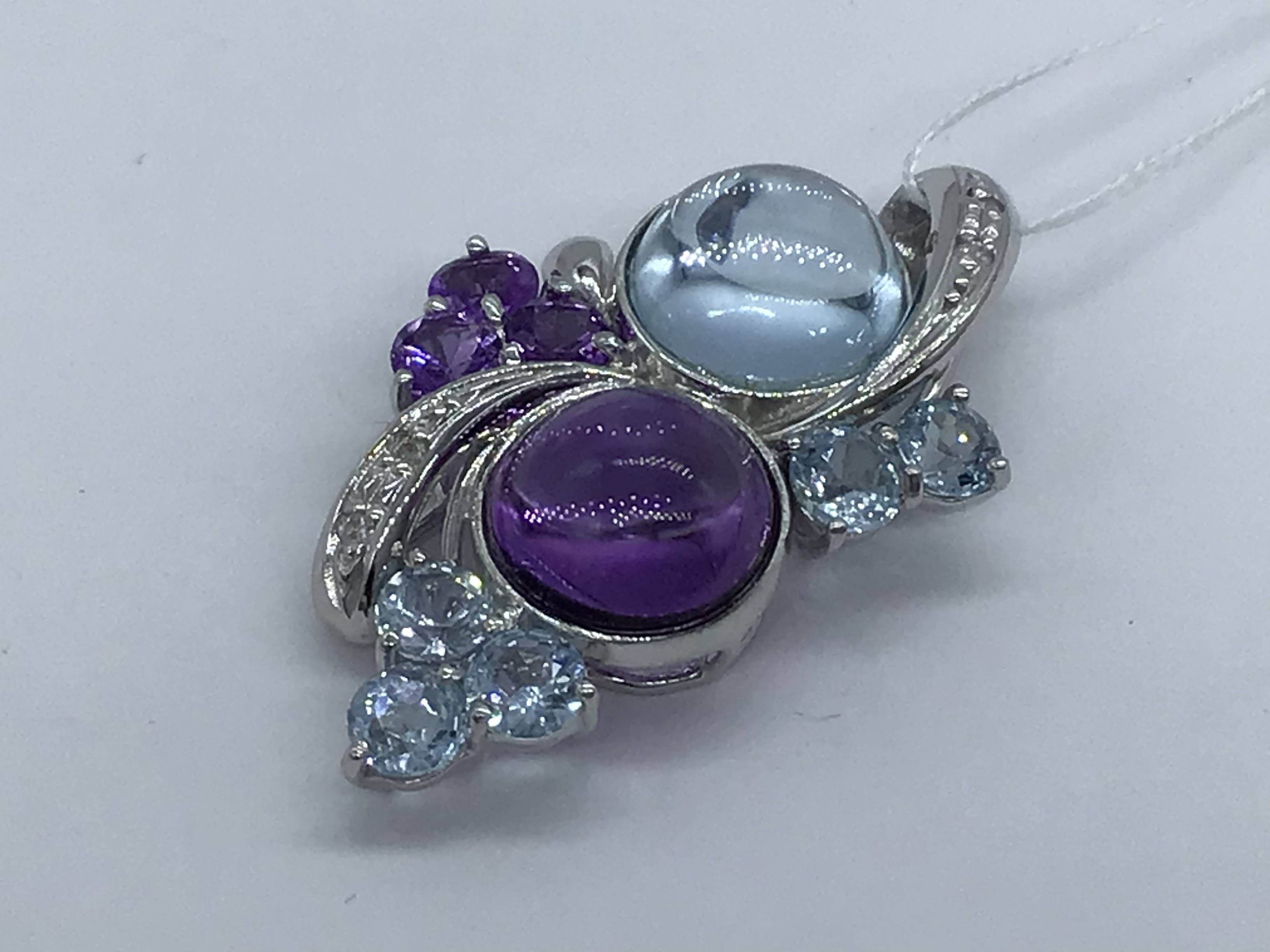 K18WGペンダント ブルートパーズ アメジスト/D0.04