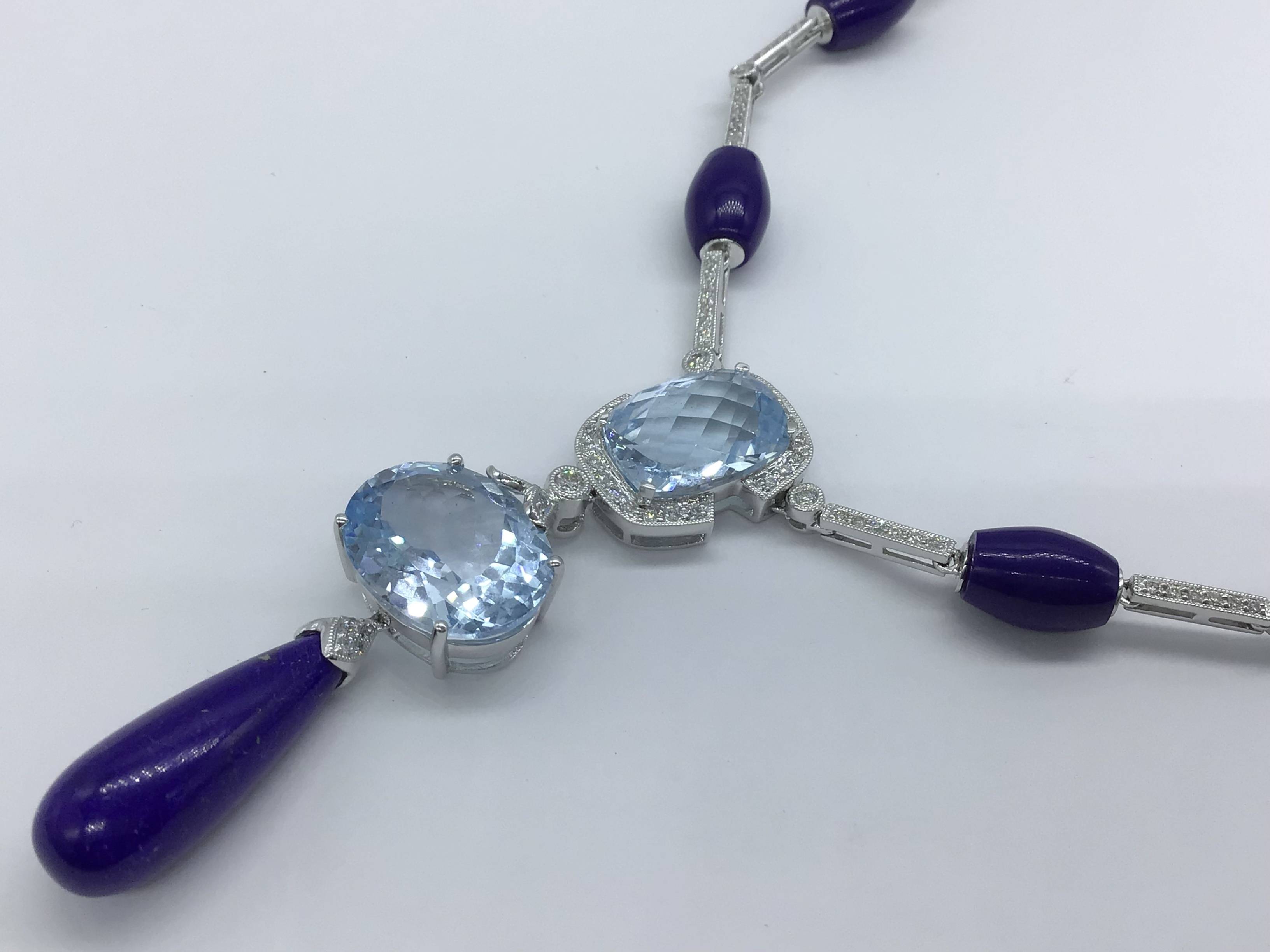 K18Wデザインネックレス ブルートパーズ ラピス/ダイヤモンド 47CM