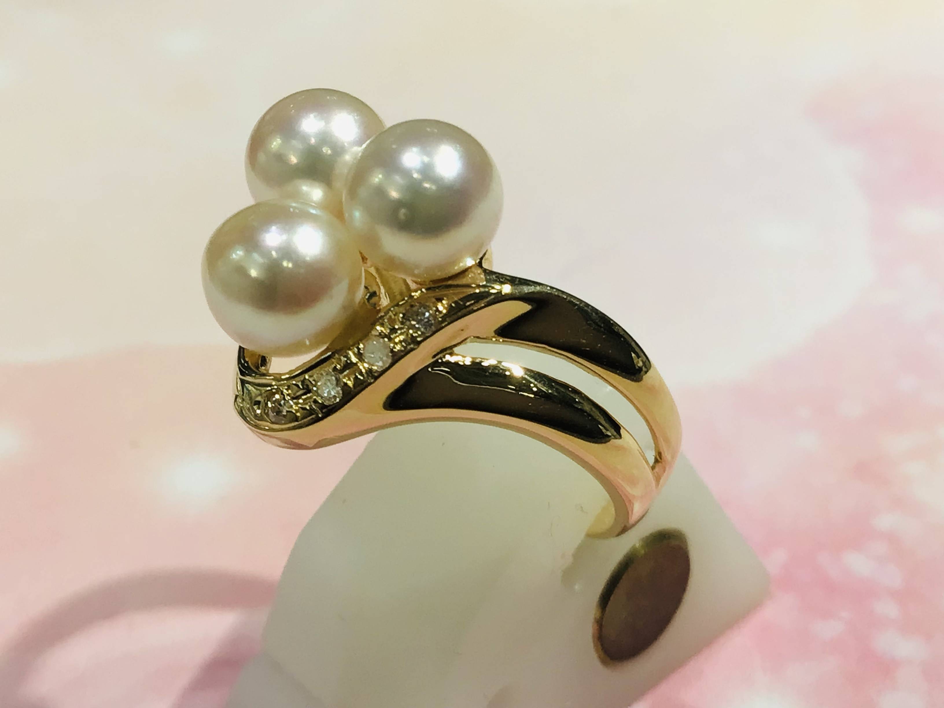 K18リング パール.ダイヤ #9 3.6g