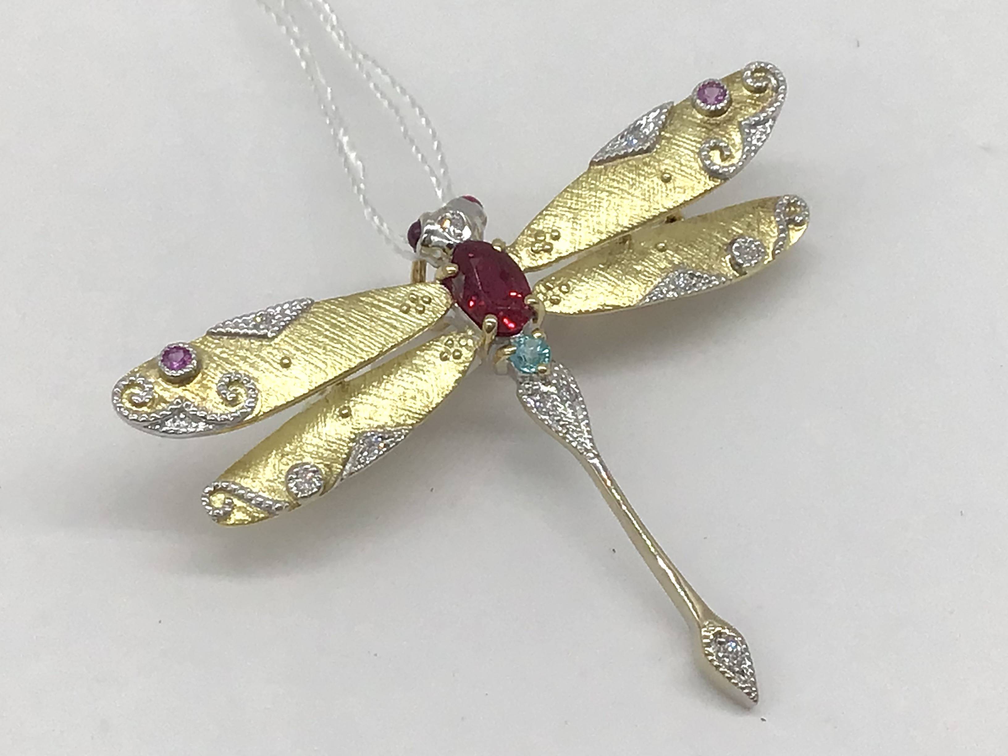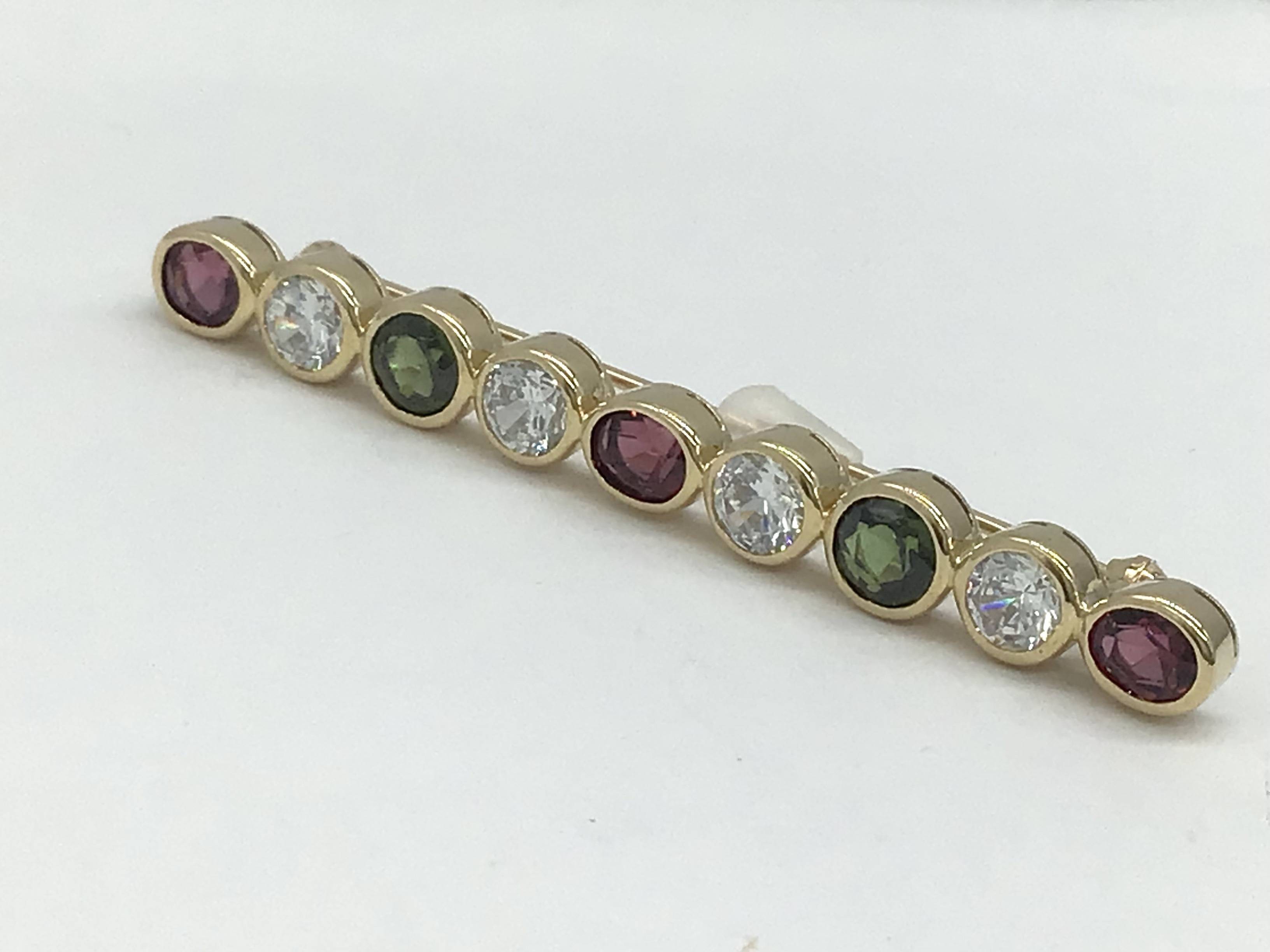 K18ブローチ トルマリン/ガーネット/CZ