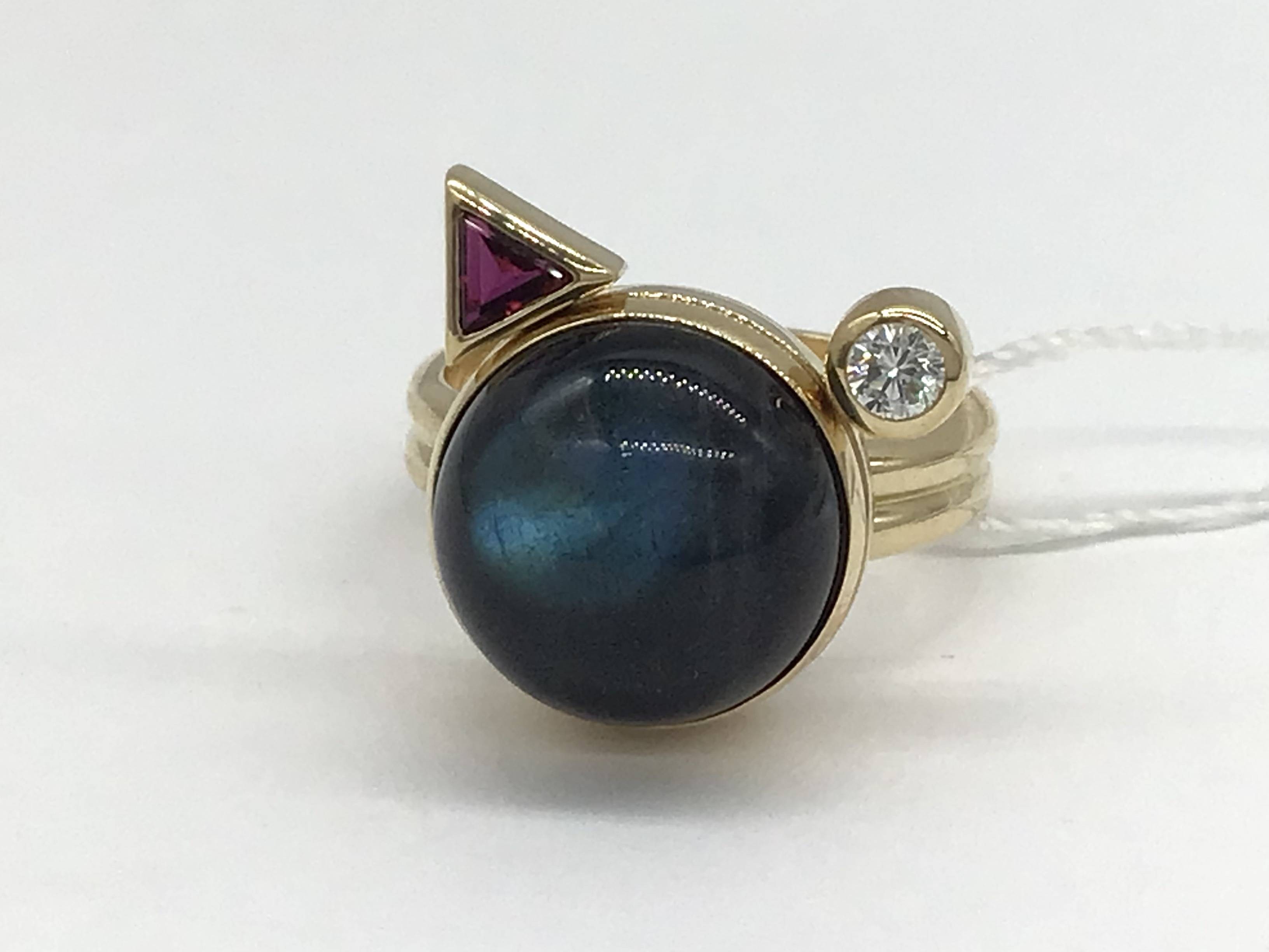K18リング ラブラドライト/ルビー/ダイヤモンド #12