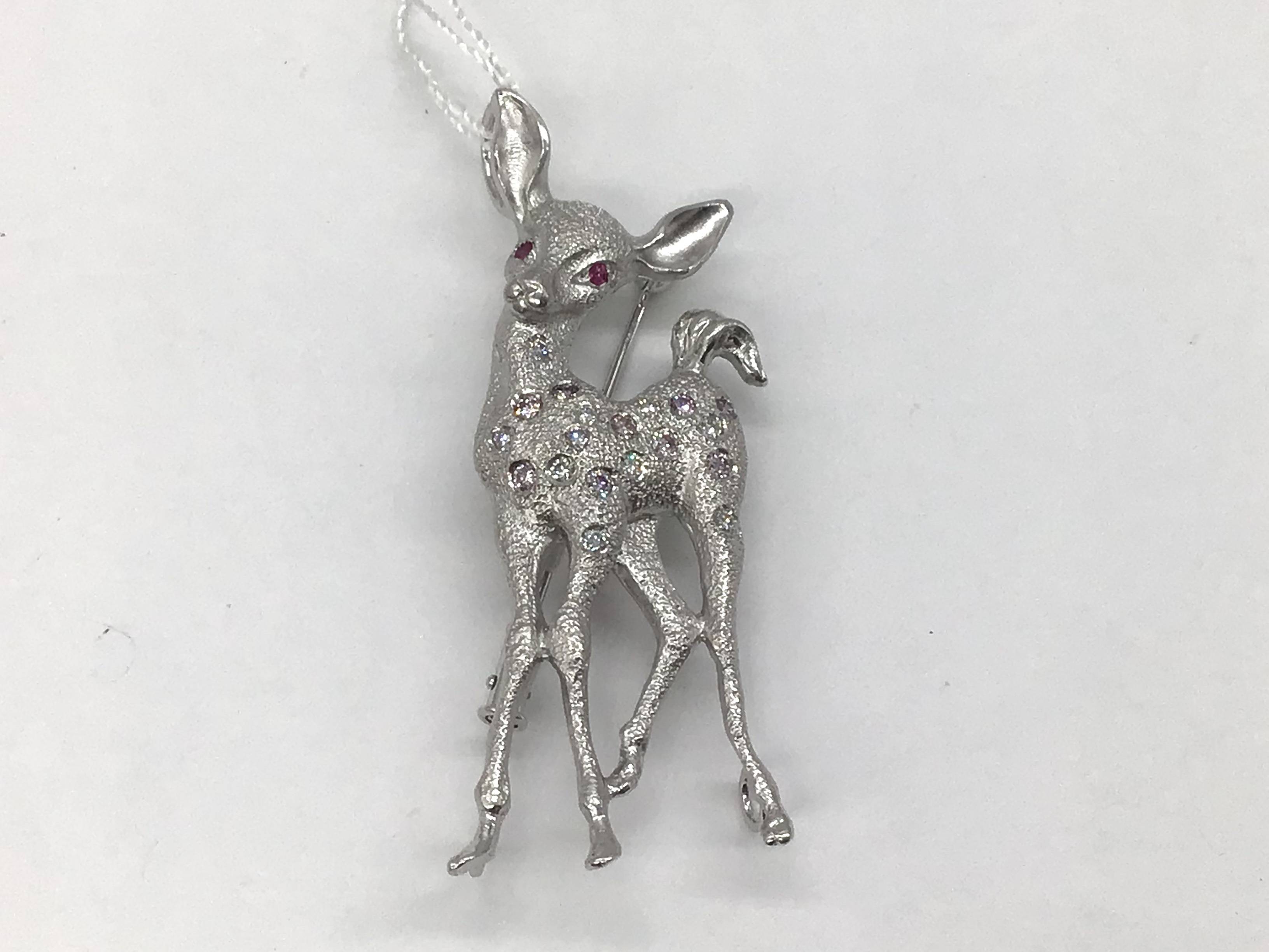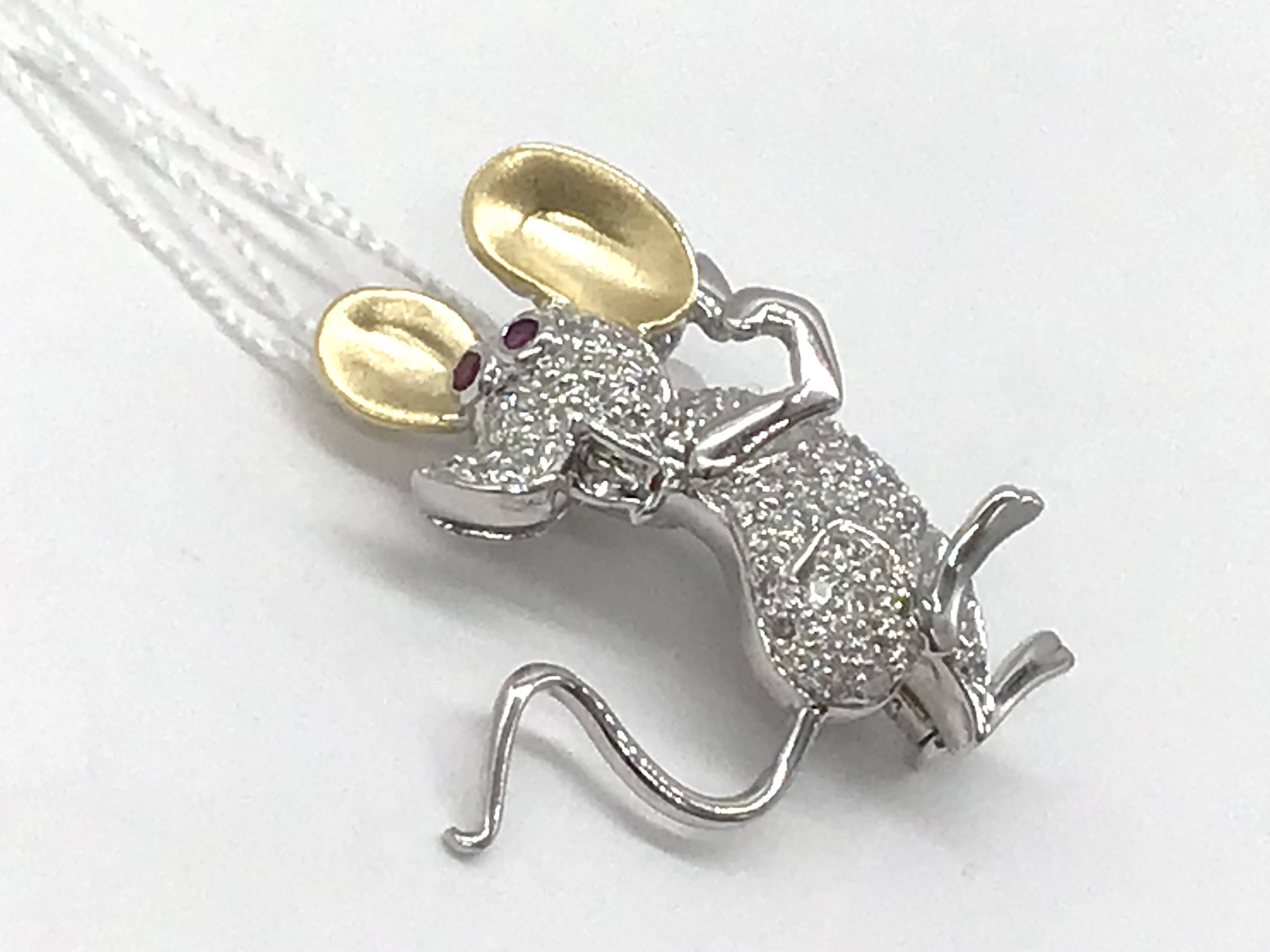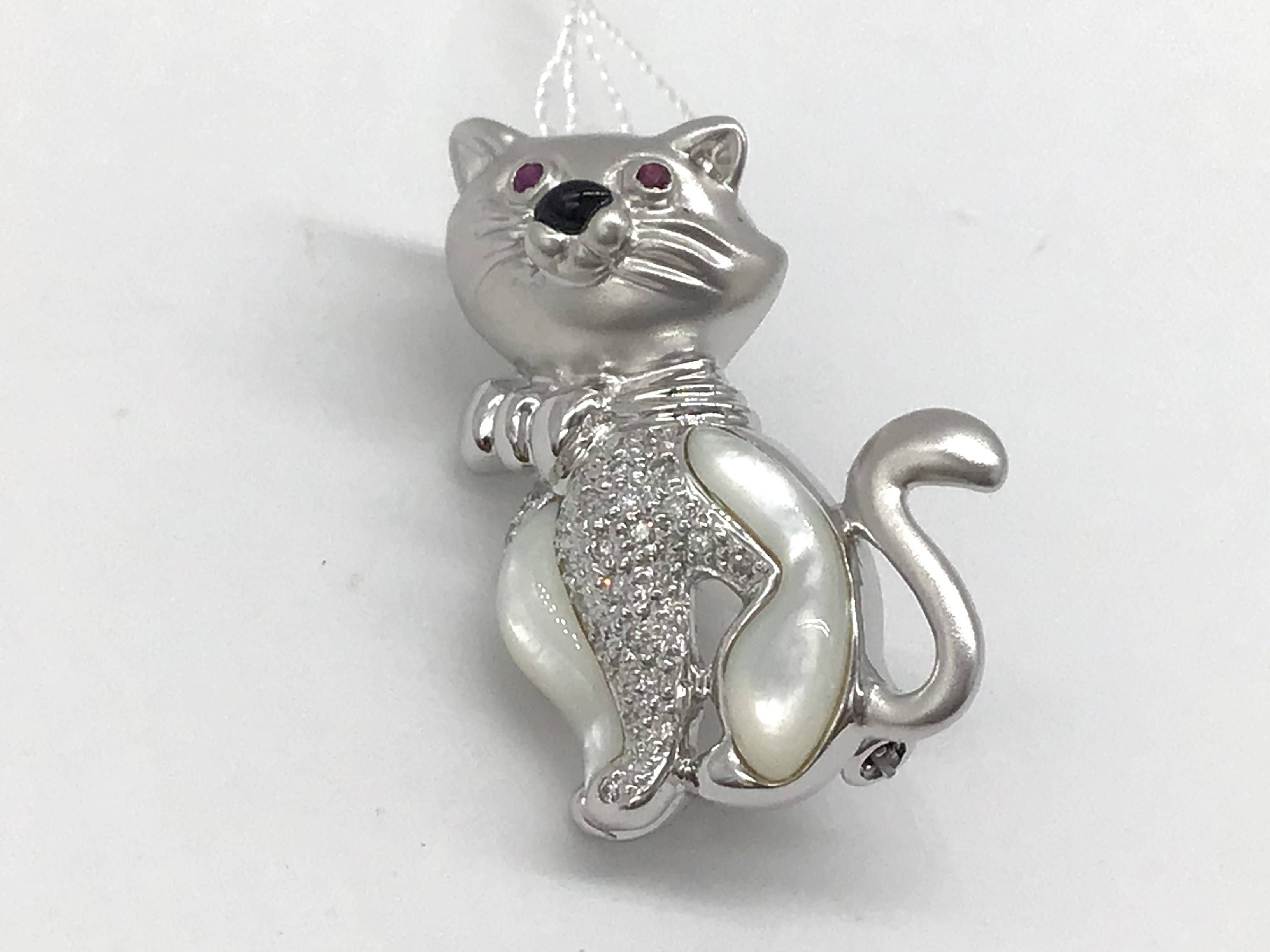 K18WGブローチ ルビー0.05/D0.40/2カラー