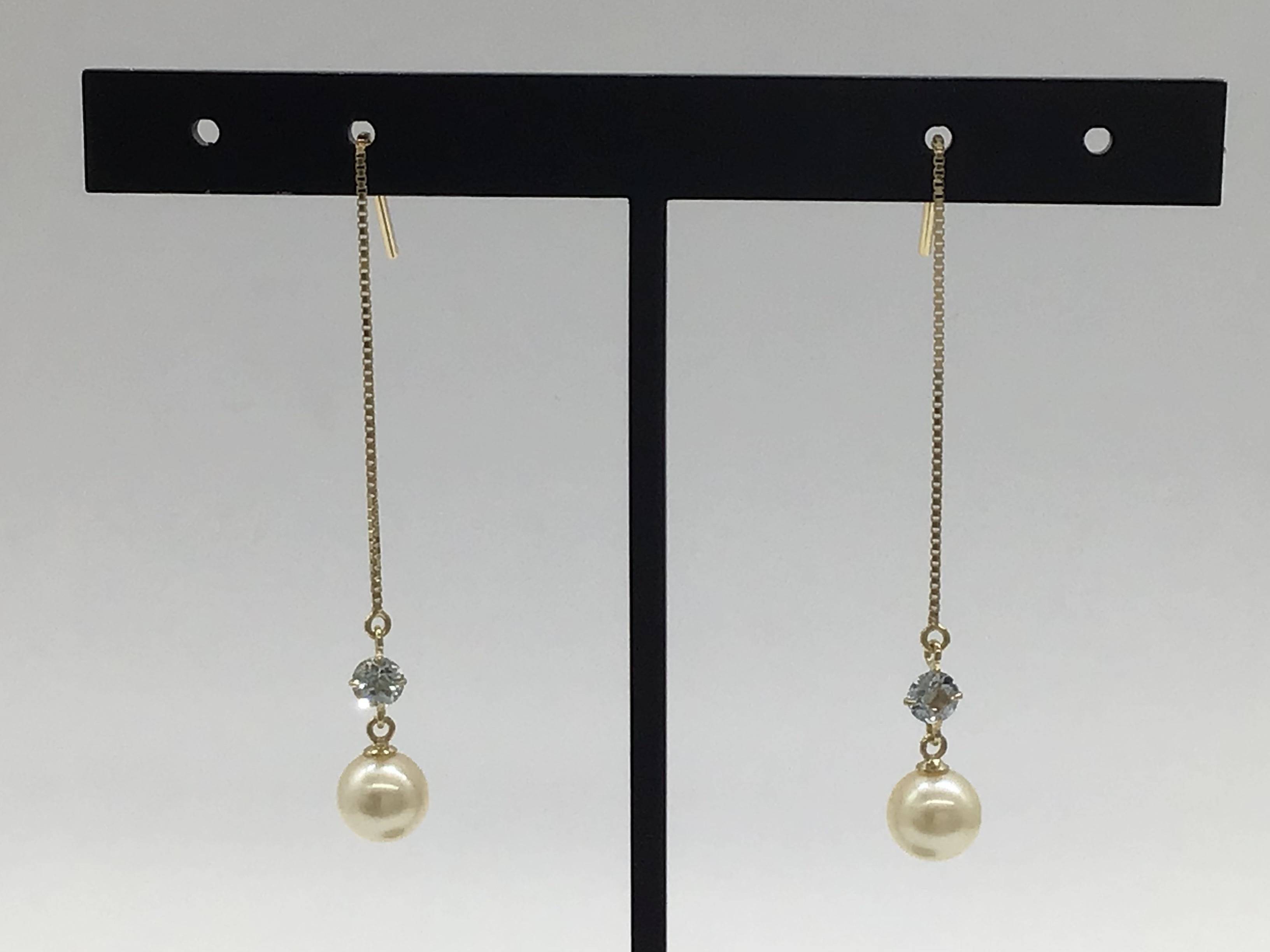 K18ピアス パール/アクアマリン
